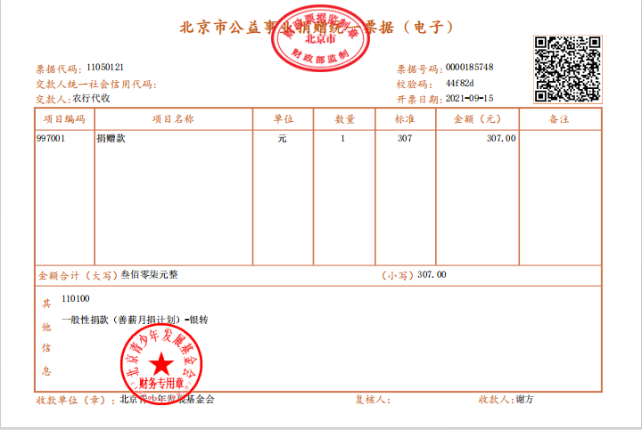 2021年4月捐赠公示
