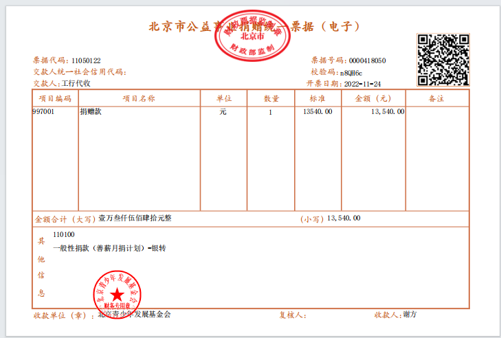 2022年11月捐赠公示