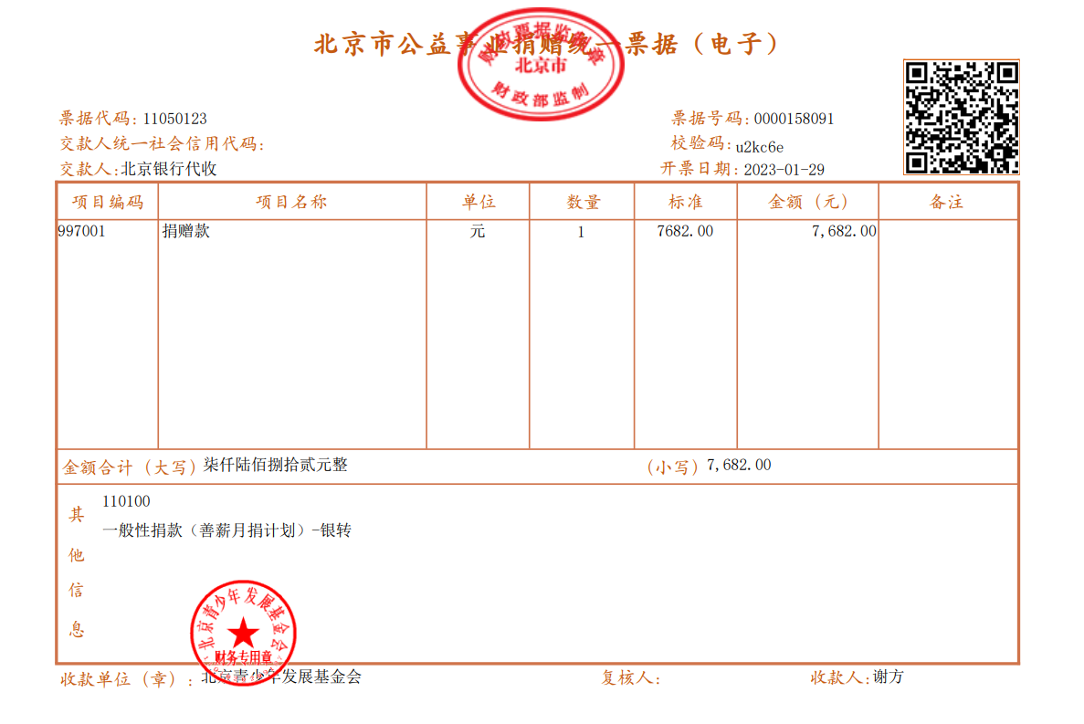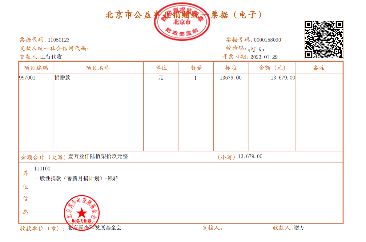 2023年1月捐赠公示