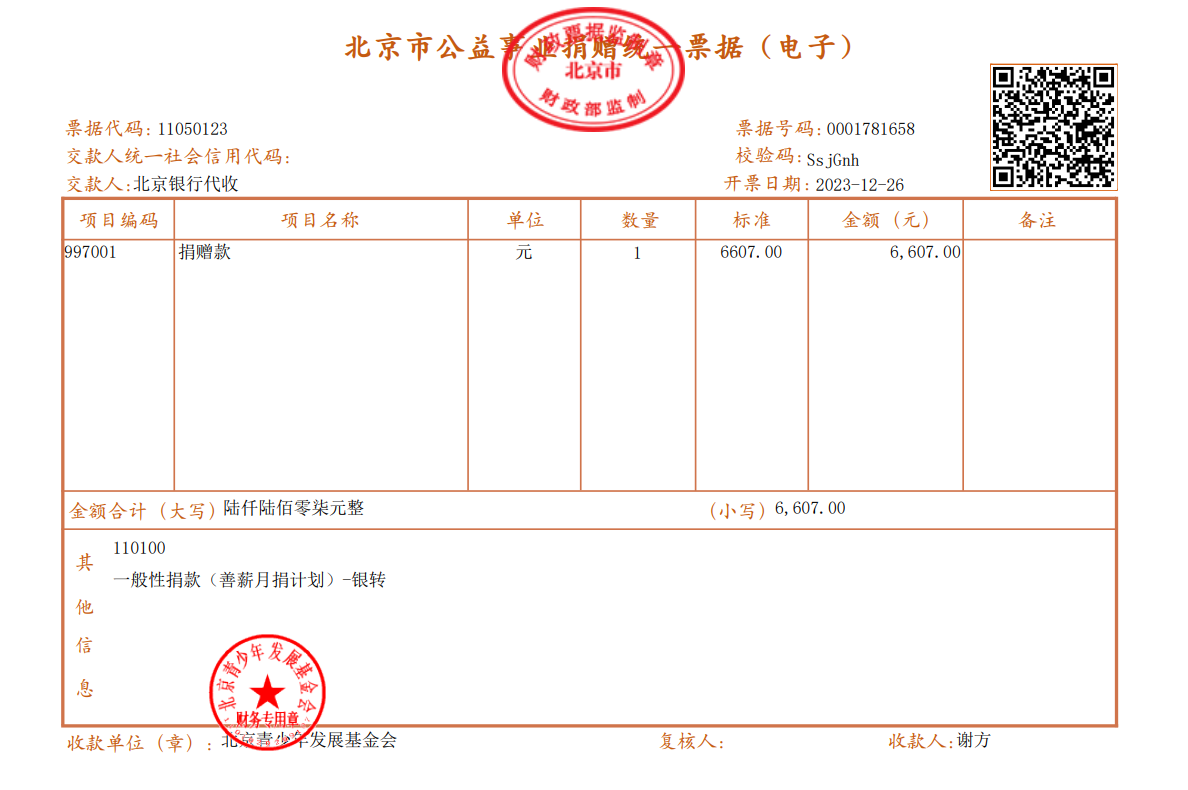 2023年12月捐赠公示